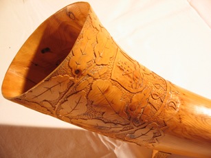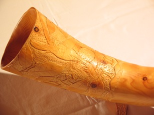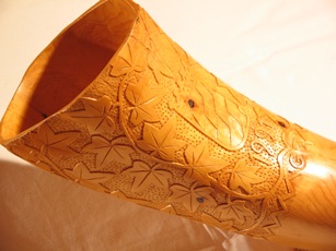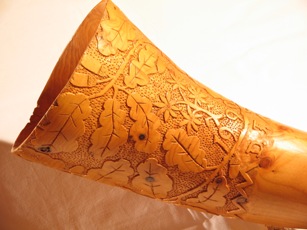 Eine weitere Spezialität ist die Schnitzerei auf dem Trichter, die wohl Einzigartig bei unseren Alphörnern ist.