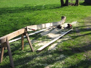 Unter der Anleitung von Franz Jell habe ich in den 60er Jahren ein 8 Meter langes Alphorn aus einem Stamm gebaut.