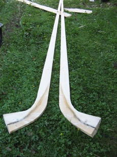 Ich hatte mich entschlossen, nur Alphörner nach der ältesten Tradition aus einem krummen Fichtenstamm zu bauen. Diese Art des der Herstellung gibt es nur noch sehr selten. Unsere Alphörner sind 4 Meter lang und in Es-Dur gestimmt. Auch von den etwas kürzeren F-Dur Alphörner habe ich einige angefertigt.